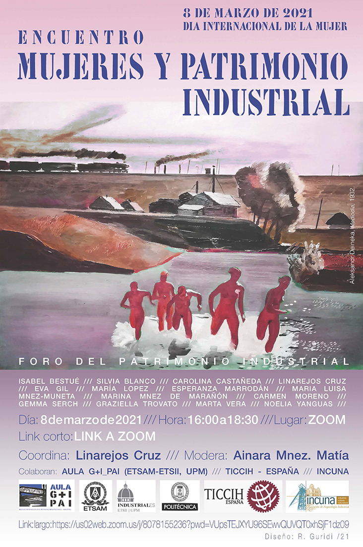 En ocasión del día de la mujer trabajadora el aula G+I PAI organiza una jornada dedicada a la relación entre la mujer y la industria. Colaboran: Aula G+I_PAI (ETSAM-ETSII, UPM), TICCIH España, INCUNA.